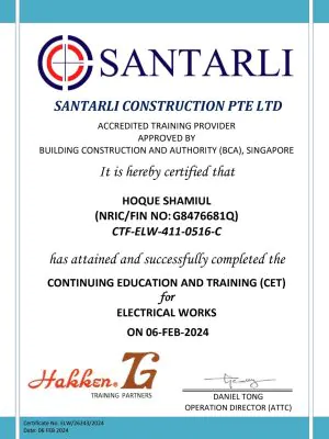Posted on Tan Yong BoonTrustindex verifies that the original source of the review is Google. I contacted Shamiul to help me replace my distribution board (all the circuit breakers) in my house. He came with his colleague and they completed the job in about an hour, as promised. The price quoted was also very reasonable, compared to other companies I contacted. I highly recommend them if you need help with things related to electrical wiring/breakers in your house.Posted on miss laneTrustindex verifies that the original source of the review is Google. I can't recommend SHS Engineering, and specifically Shamiul, highly enough! I had a baffling issue where my bedroom light would flicker even when the switch was completely off. Shamiul was absolutely wonderful. He arrived prepared, was incredibly professional, and demonstrated exceptional meticulousness and thoroughness in his work. He quickly diagnosed the root cause of the flickering, using the right tools and systematic inspection to locate the tricky problem. Beyond fixing the immediate light issue, he also identified and corrected problems within my old DB box by replacing it with a new one. What truly set Shamiul apart was his communication. He took the time to clearly explain the technical issues in a way that I could easily understand, which gave me complete confidence in the necessary repairs. If you need an electrician who is knowledgeable, professional, and genuinely cares about doing a complete and proper job, look no further than Shamiul at SHS Engineering. Five stars!Posted on Aziziah IsmailTrustindex verifies that the original source of the review is Google. Good service and very friendly.Can recommed.Neat jobPosted on Simon LeeTrustindex verifies that the original source of the review is Google. This contractor is responsible, fast and reliable. Did a good job. Gave them a difficult task to do, they delivered. Ty Samiul and team. Pricing reasonable.Posted on Rebecca JosephTrustindex verifies that the original source of the review is Google. Needed to electrical works for an aircon point. These guys did a great job. They are very professional in my view too. Very happy. Although some delays due to their work. All was great. Very happy it and will call them if need more electrical works to be done. Thank youPosted on leon leeTrustindex verifies that the original source of the review is Google. Deliver services on time and detailed explanation of workPosted on mcullenTrustindex verifies that the original source of the review is Google. Shamiul did a fantastic job fixing my wires 🤗 I reached out to him at 6AM, and while other companies claimed to be 24/7, he actually showed up by 6:30AM! The process was quick and smooth — he made sure everything was working perfectly before wrapping up. The price was also really reasonable! On top of that, Shamiul even shared some electrical tips that were super useful 🧮 Thank you so much! Will definitely contact again for future help.Posted on Li TanTrustindex verifies that the original source of the review is Google. Shamiul done a good job, he very focus and efficient, very friendly and good skills. Thanks again Shamiul. Will look for him again if i need help.Posted on Yip AliceTrustindex verifies that the original source of the review is Google. Shamiul n his colleague did a good job. Called past 11pm and able to come within a short time. Professional. Able to troubleshoot my issues. Keep it up. Thanks for the urgent help !!